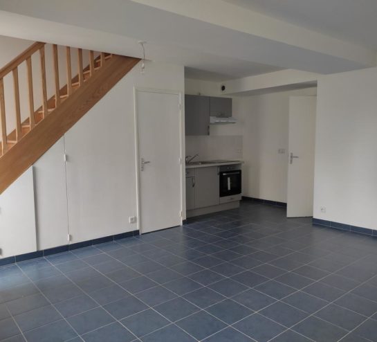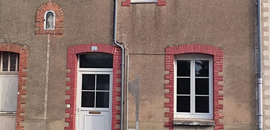 Petite maison de 58m² à louer dans le centre bourg de Loiré (49), libre début novembre 2025, loyer de 550€ charges non comprises, comprenant au RDC 1 entrée sur salon séjour, une petite cuisine aménagée et équipée d'un four, d'une hotte et d'une plaque de cuisson, un wc et une salle de bain.