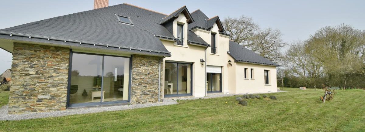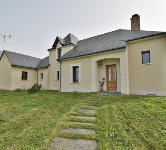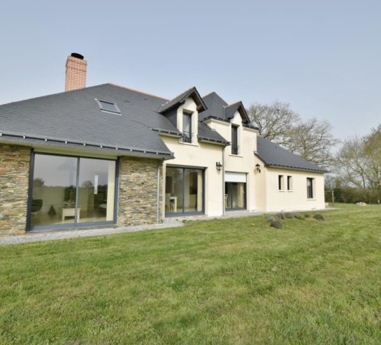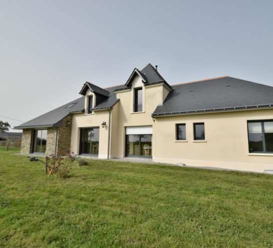 Située dans un environnement verdoyant, sur la commune du Louroux-Béconnais, cette maison individuelle récente offre un cadre de vie agréable avec une vue dégagée sur la campagne environnante. Construite en 2009, elle développe environ 155 m² habitables répartis sur deux niveaux et bénéficie d’une conception moderne privilégiant la luminosité et les volumes.