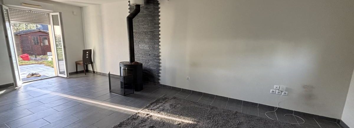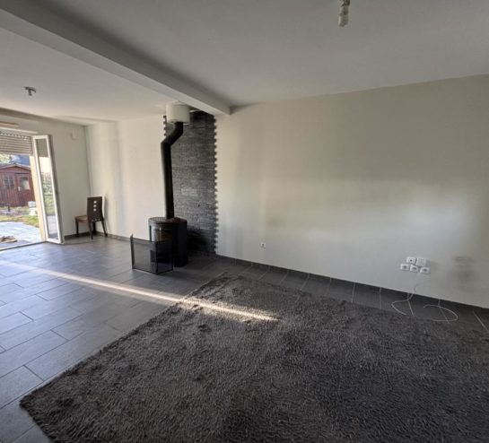 Au rez-de-chaussée, la maison se compose d’une pièce de vie avec cuisine ouverte aménagée et équipée, ainsi que d’une salle d’eau avec WC.