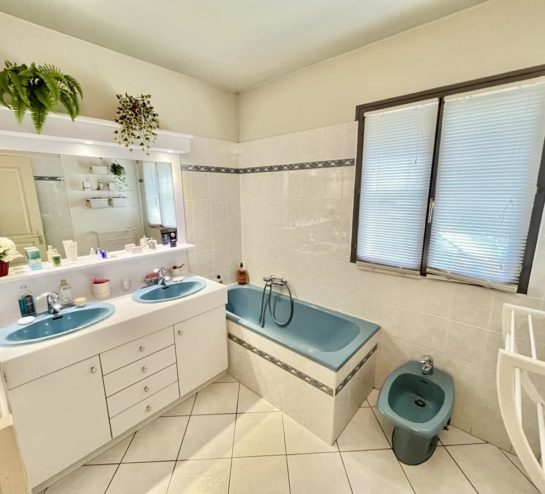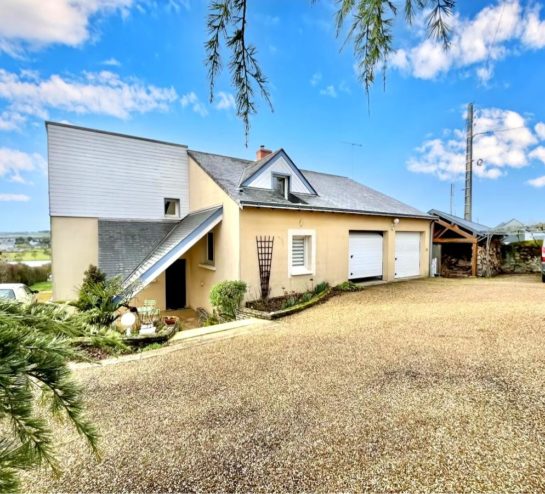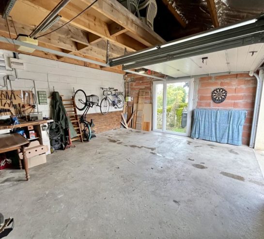 En demi-niveau, la maison propose une arrière-cuisine, une salle d’eau avec WC, une quatrième chambre indépendante, ainsi qu’un double garage.