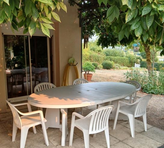 • un coin intimiste, parfait pour les soirées d’été, protégé par une élégante glycine,