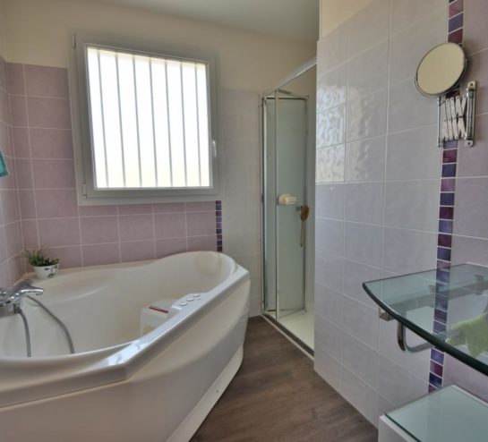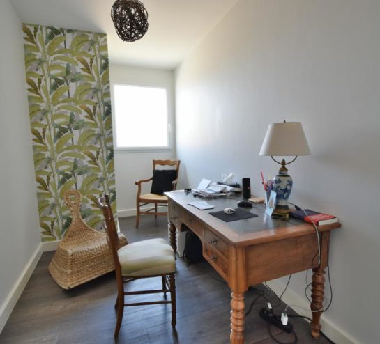Elle dispose de trois chambres, d’un bureau, d’une buanderie, d’une salle de bain avec douche, de deux WC et d’un double garage. L’ensemble est complété par un jardin aménagé, agréable et facile d’entretien.