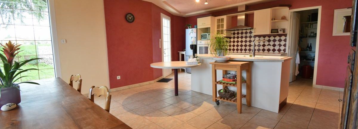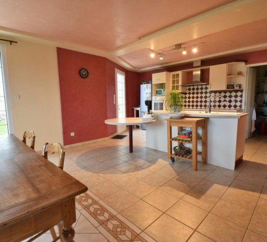 Construite après 2000, cette maison en bio briques offre une excellente isolation thermique et phonique. Elle se compose d’une très grande pièce de vie traversante et lumineuse, avec cuisine ouverte, aménagée et équipée.